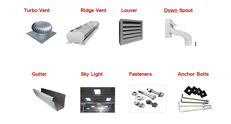 In addition to the PEB components, Metalkraft also provides a wide range of PEB accessories such as Sky Lights, Wall Lights, Turbo Vents, Ridge Vents, Louvers and Fasteners etc.